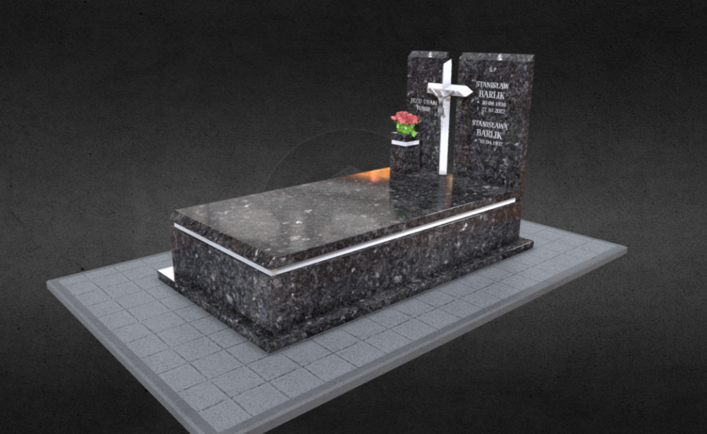 Kolejnej soboty Pani Danuta i pan Marek odwiedzili nas osobiście w zakładzie. Zaprezentowane zostały im trzy różne odcienie wybranego kamienia. Ostatecznie Pani Danuta zdecydowała się wybrać jedną z opcji. Po wyborze wzoru nagrobka i kamienia mogliśmy przejść do szczegółowej wyceny wykonania pomnika. Cena została zatwierdzona, umowa podpisana, a w ciągu kilku kolejnych dni przygotowany został dla nich projekt 3D, który szybko zaakceptowali.